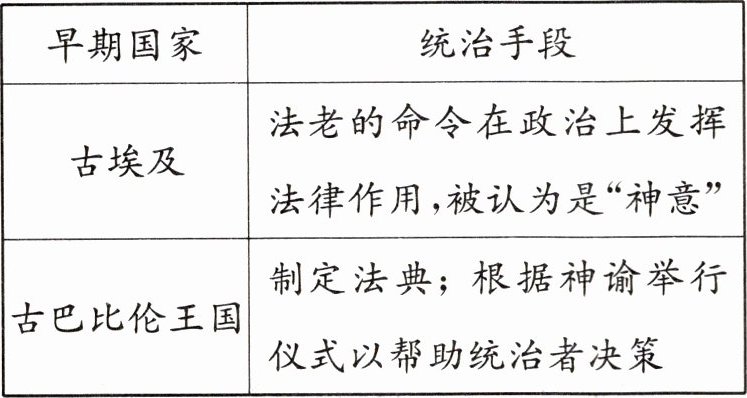 4. [2024广东中考]下面是世界古代史上两个早期国家的统治手段简表。据此可知,两者的共性是(