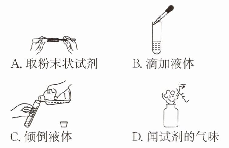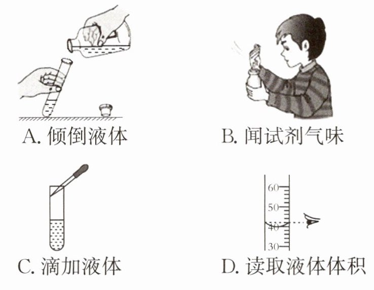 3. 液体试剂通常盛放在细口瓶中,常用倾倒的方法取用。如图所示,实验用品的使用细节中,正确的是 (