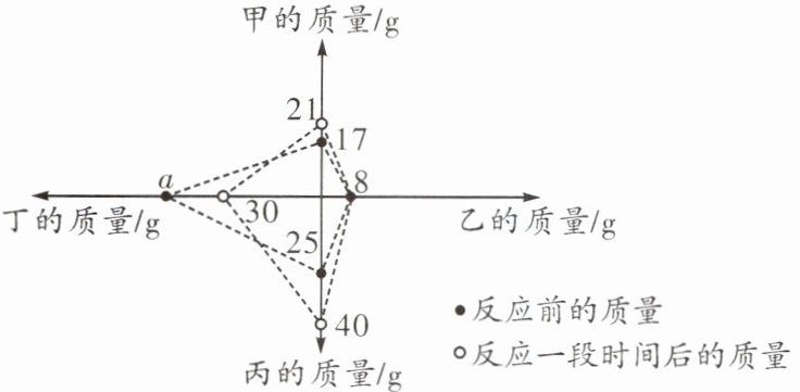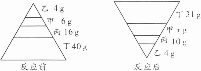 14. (2025·云南昆明·期末考试)密闭容器中有甲、乙、丙、丁四种物质,它们在一定条件下发生化学反应,测得反应前及反应一段时间后各物质的质量变化如图所示。下列说法正确的是(