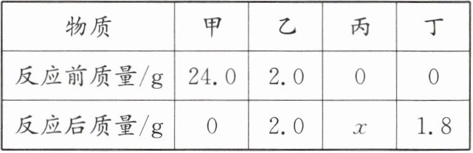 |反应前质量$/g$|$24.0$|$2.0$|$0$|$0$|