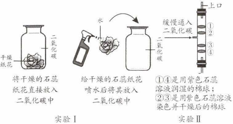 。(2)实验Ⅰ中给干燥的石蕊纸花喷水后将其放入二氧化碳中,观察到的现象是