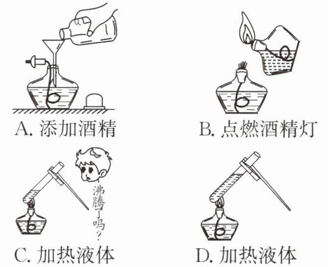 D选项:加热液体时,液体体积超过了试管容积的$\frac{1}{3}$,操作错误。