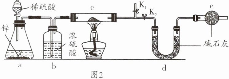 乙方案:实验原理为Cu₂O + H₂ $\xlongequal{\triangle}$ 2Cu + H₂O。称取一定质量的固体样品,用图2所示装置进行实验(固定装置略),通过测定反应前后装置d的质量达到实验目的。