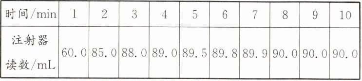 mL,理由是8~10min注射器读数不再变化,反应已结束