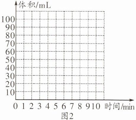 ②在图2所示的坐标图中用光滑曲线绘制出0~10min内生成的$CO_2$的体积随时间变化的图像。