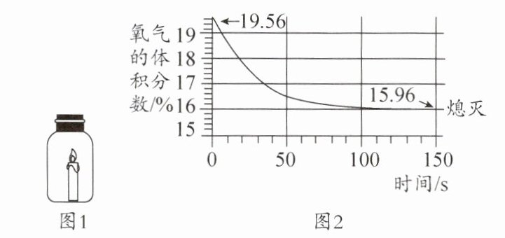 8. 蜡烛(足量)在如图1所示的密闭装置内燃烧至熄灭,用仪器测出这一过程中瓶内氧气含量的变化(如图2所示)。下列判断正确的是(