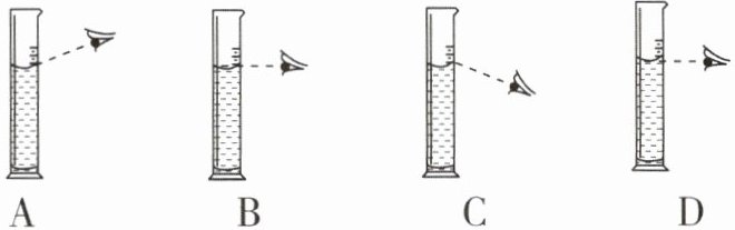 4. 下列选项中,虚线表示用量筒测盐水的体积时的视线,其中正确的是(