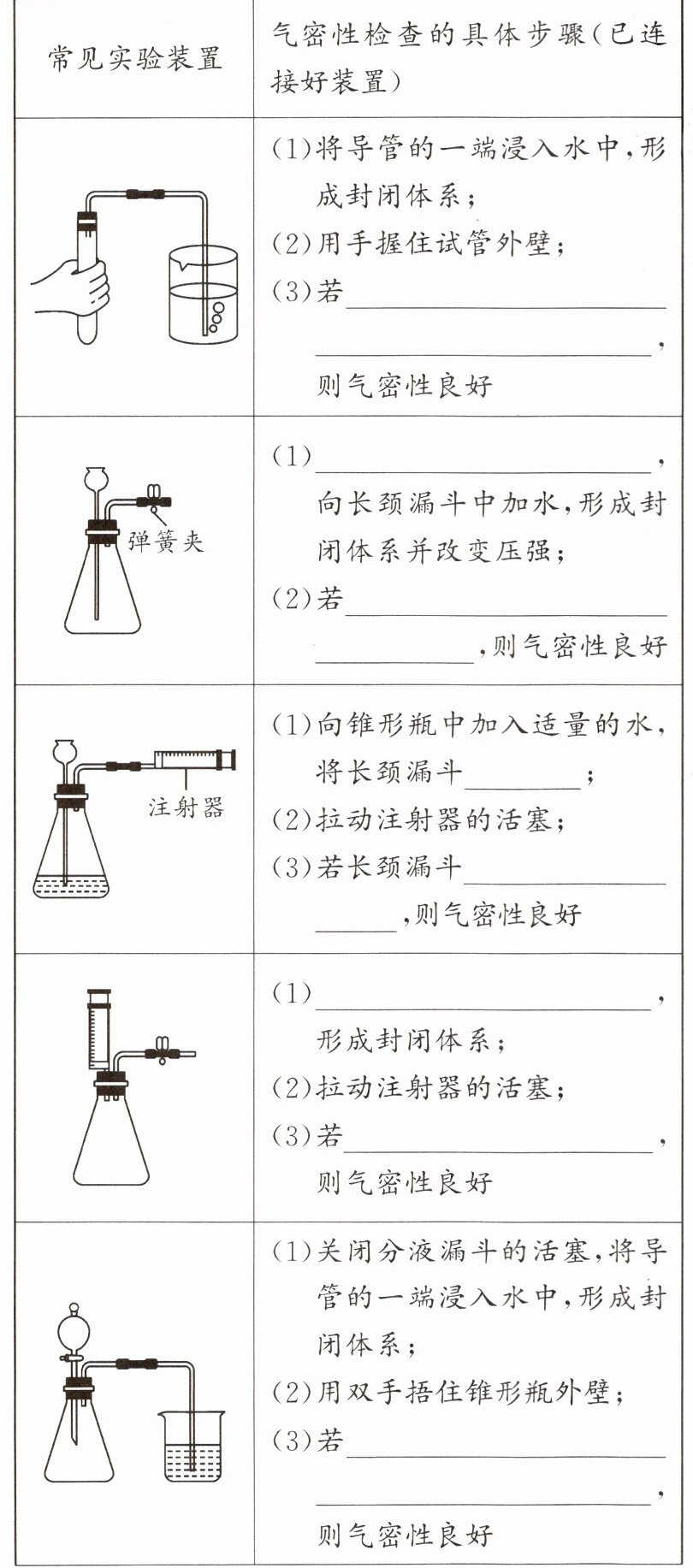 ,则气密性良好|||(1)向锥形瓶中加入适量的水,将长颈漏斗