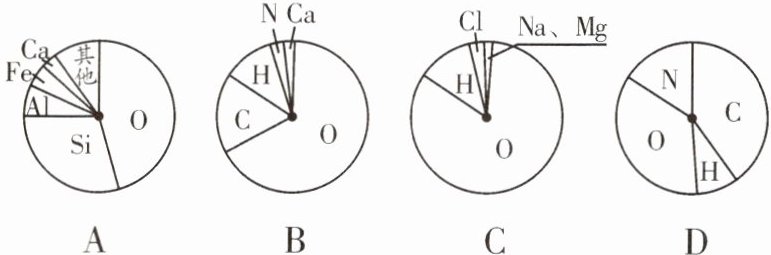 1. 下列四幅元素含量示意图中,能表示地壳中元素含量分布的是(