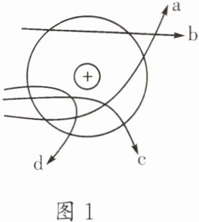 。④卢瑟福的α粒子散射实验推翻了汤姆孙提出的原子结构模型,为建立现代原子理论打下了基础。如图 1 所示,可能是α粒子(带正电荷)在该实验中的运动轨迹的是
