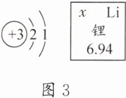 2019 年度诺贝尔化学奖授予在可充电锂离子电池研究领域做出突出贡献的三位科学家。图 3 所示为锂的原子结构示意图及锂在元素周期表中的相关信息。