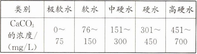 |${CaCO_{3}}$的浓度/(mg/L)|0~75|76~150|151~300|301~450|451~700|