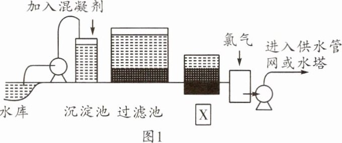 化学兴趣小组的同学通过参观考察,绘制了自来水厂处理天然水的过程,如图 1 所示。