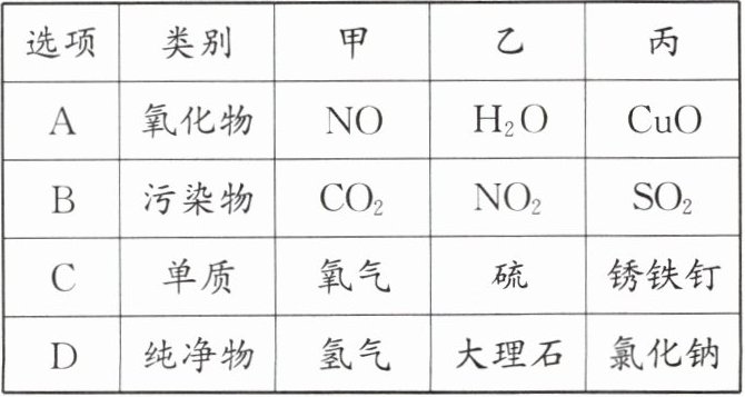 6. 分类法是学习化学的重要方法之一。某同学对所学的部分化学物质进行分类,其中完全正确的一项是(