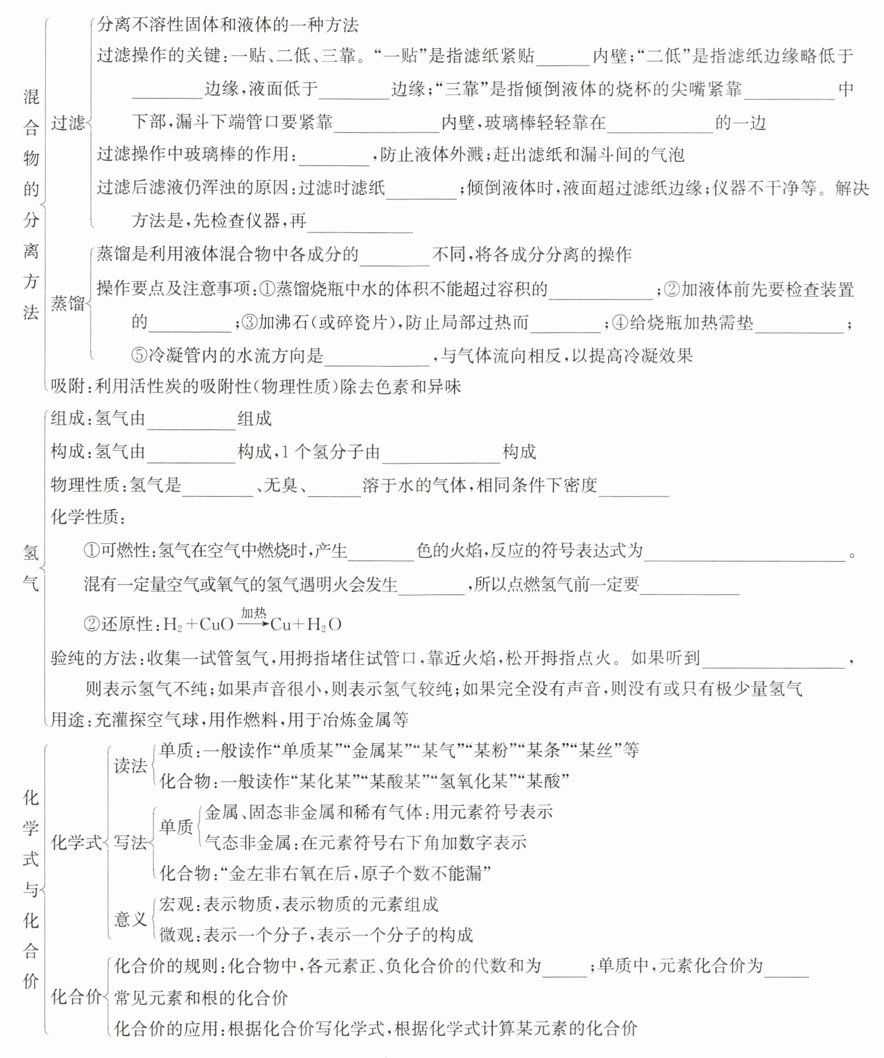 - 过滤操作中玻璃棒的作用:**引流**,防止液体外溅;赶出滤纸和漏斗间的气泡