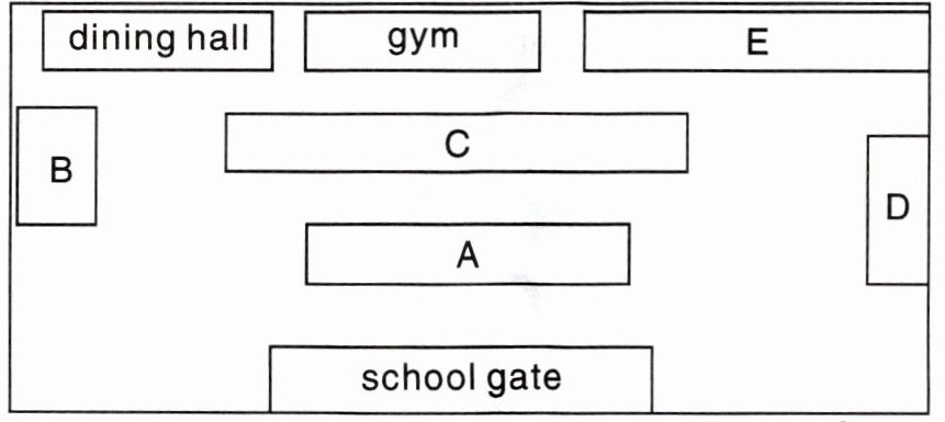A. office building B. library C. teaching building D. science hall E. playground