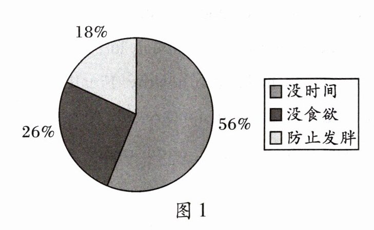According to a recent survey, quite a few middle school students seldom or even never have breakfast before they go to school. As we can see from the pie chart, 56% of the students say they don't have breakfast because they have no time. 26% of them have no appetite in the morning. And 18% of the students don't have breakfast to prevent getting fat.