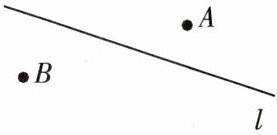 4. 过 $ A $ 点作直线 $ l $ 的平行线,过 $ B $ 点作直线 $ l $ 的垂线。