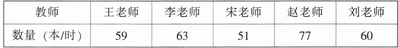 某校创建图书示范校,要往电脑中输入新购进的图书目录,五位教师每时输入数量如下表: