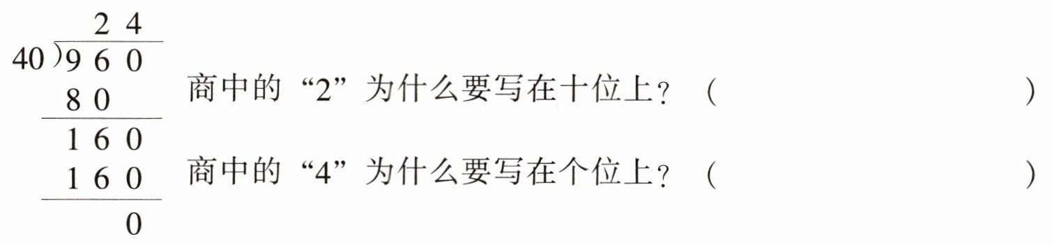 2. 某校四年组买 40 个足球,共用 960 元。根据左竖式回答下列问题。