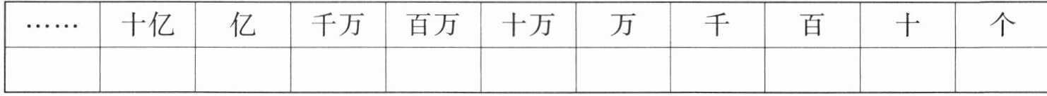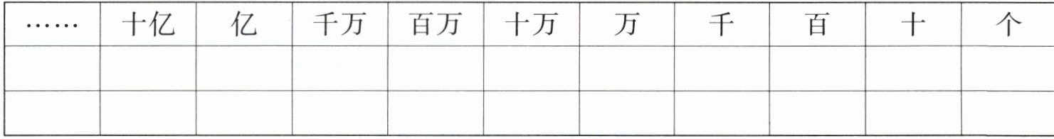 | 十亿 | 亿 | 千万 | 百万 | 十万 | 万 | 千 | 百 | 十 | 个 |