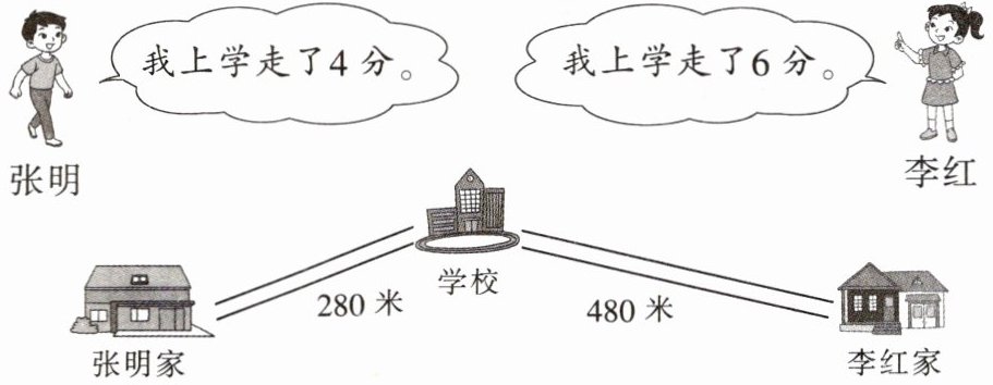 3.280÷4=70(米/分) 480÷6=80(米/分) 70<80 李红走得快些。