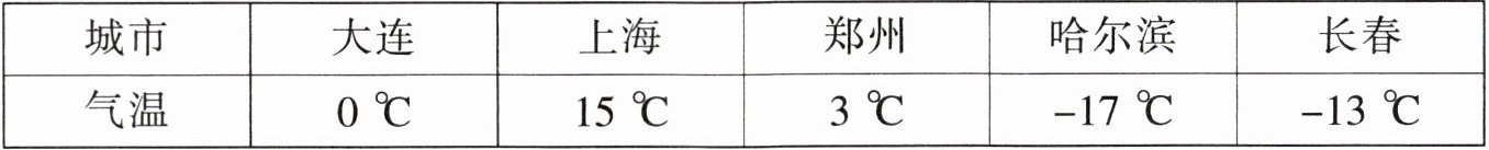 (1) 哈尔滨与长春哪个城市气温高?长春与郑州哪个城市气温高?