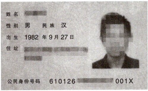 2. 右图是某人身份证的信息,有些地方看不清楚了,但知道他的生日是1982年9月27日。请你把他的身份证号码补充完整:610126