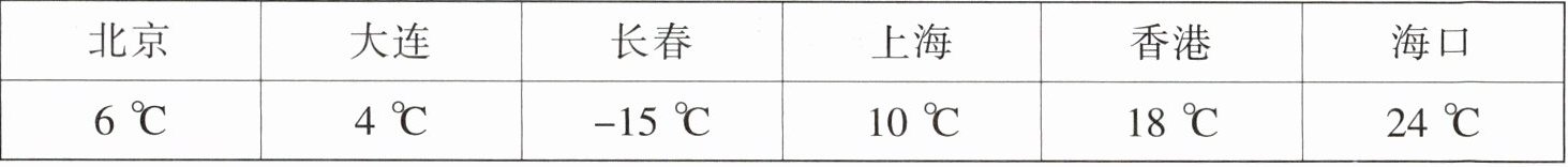 2. 下面是某一天同一时刻我国6个城市的气温情况: