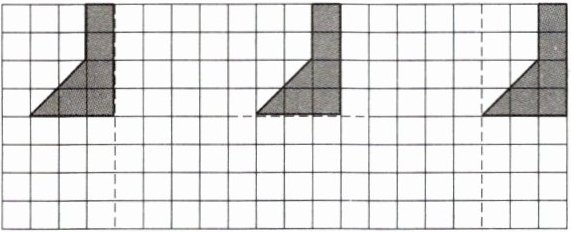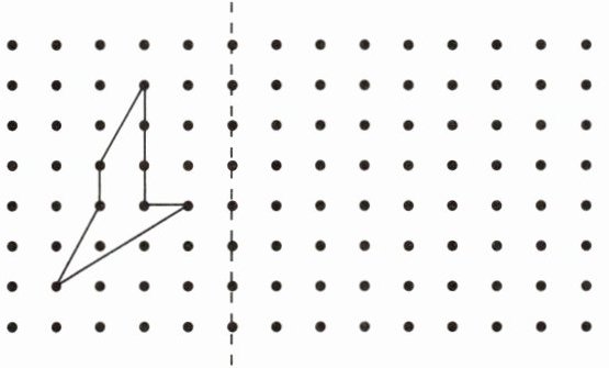 2. 以虚线为对称轴,画出下面图形的轴对称图形。