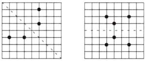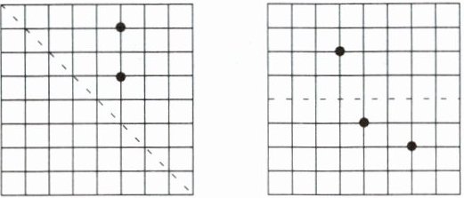 1. (1)以虚线为对称轴,分别画出下面各点的对称点。