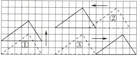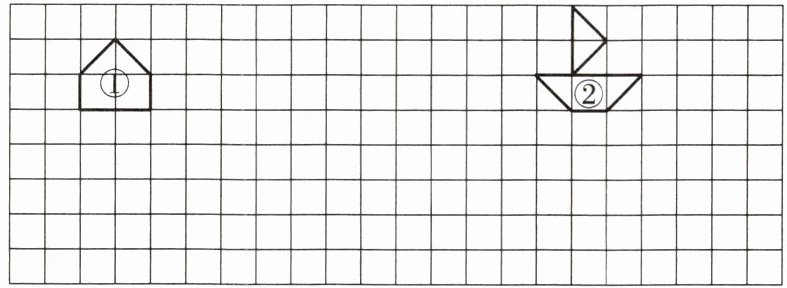 3. 如果先将图②向( )平移( )格,再向( )平移( )格,那么就与图①拼成( )形。试着画一画平移后的图形。
