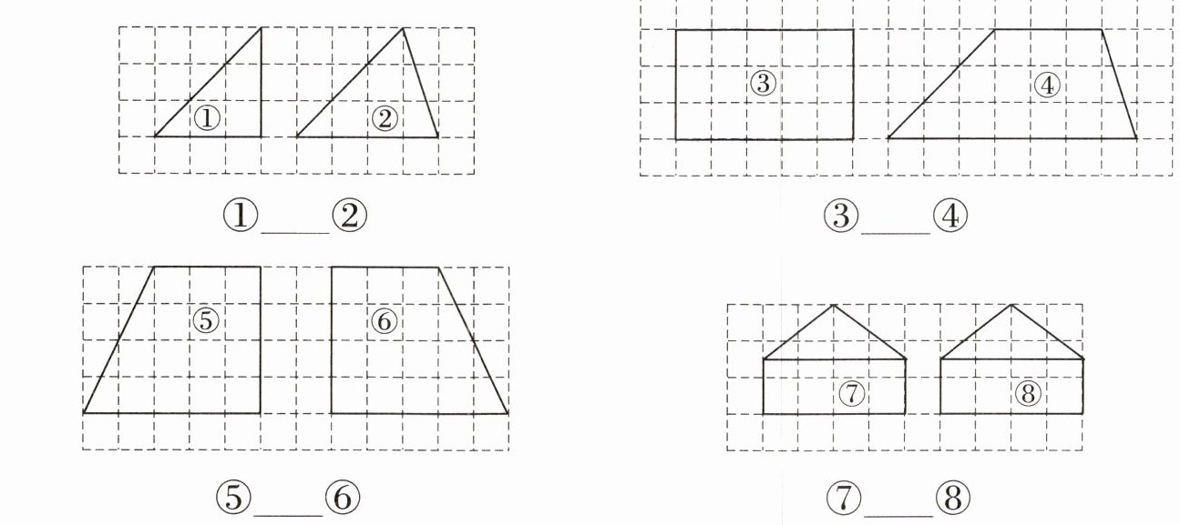 1. 在下面的图形中,根据面积的大小,填上“<”“>”或“=”。