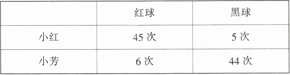 下面是小红和小芳各摸了 50 次的情况统计表。