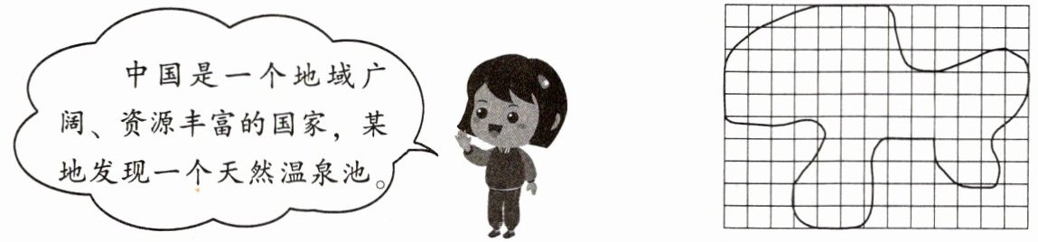 本题可通过数方格的方法来估算天然温泉池的占地面积,不满一格的按半格计算。