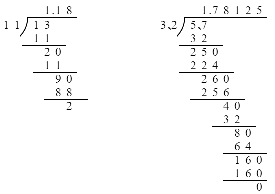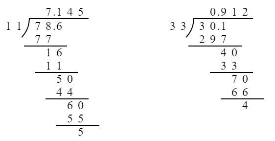 $13÷11$ $57÷32$ $78.6÷11$ $30.1÷33$