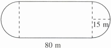 2. 该图形由两个半圆和一个长方形组成,两个半圆可拼成一个圆,圆的半径$r = 15\space m$,长方形的长为$80\space m$。圆的周长为$2\pi r=2×3.14×15 = 94.2\space m$,长方形两条长的长度为$2×80=160\space m$,图形周长为$94.2 + 160=254.2\space m$。