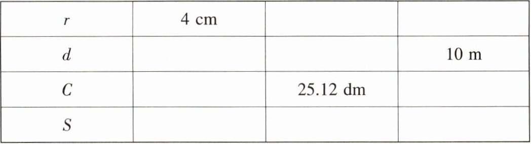 | $r$ | $4\mathrm{cm}$ | $4\mathrm{dm}$ | $5\mathrm{m}$ |