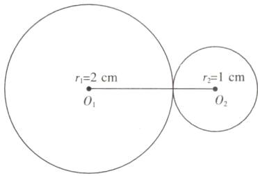 (1)以一条长 $ 3 \, cm $ 的线段的两端为圆心,分别作半径是 $ 2 \, cm $ 和 $ 1 \, cm $ 大小的两个圆。