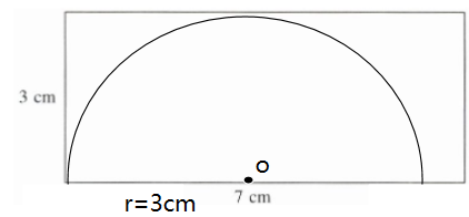 2. 在一个长$7cm$、宽$3cm$的长方形里画一个最大的半圆,并用字母表示出它的圆心和半径。