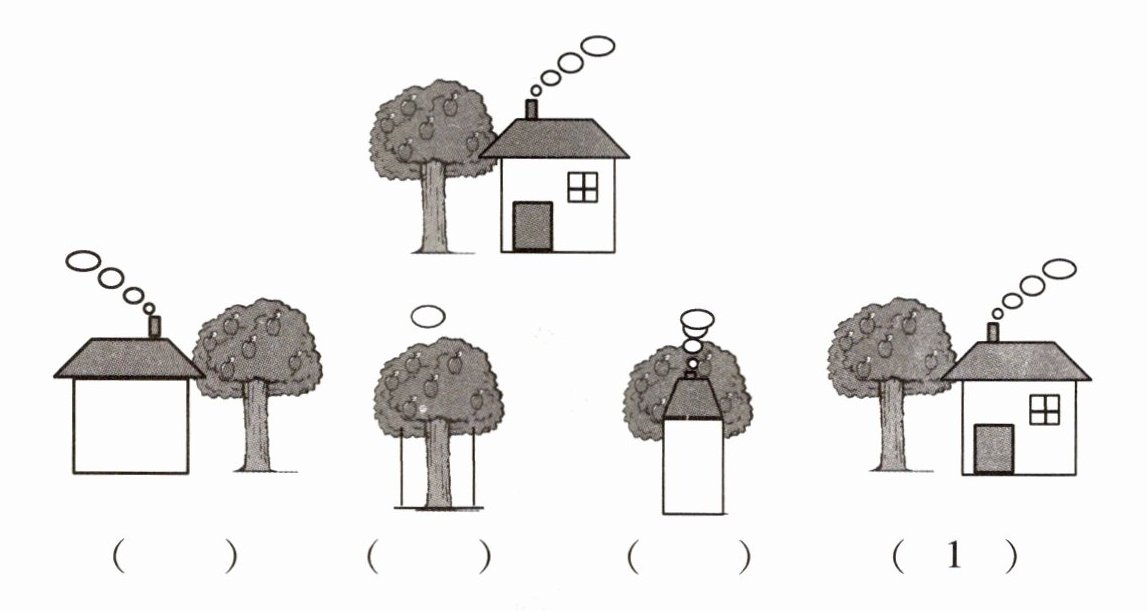 2. 小明从房子的正面出发围绕房子按逆时针方向走了一圈,并分别在房子的前后左右各拍了一张照片,请根据他拍照的先后顺序排序。