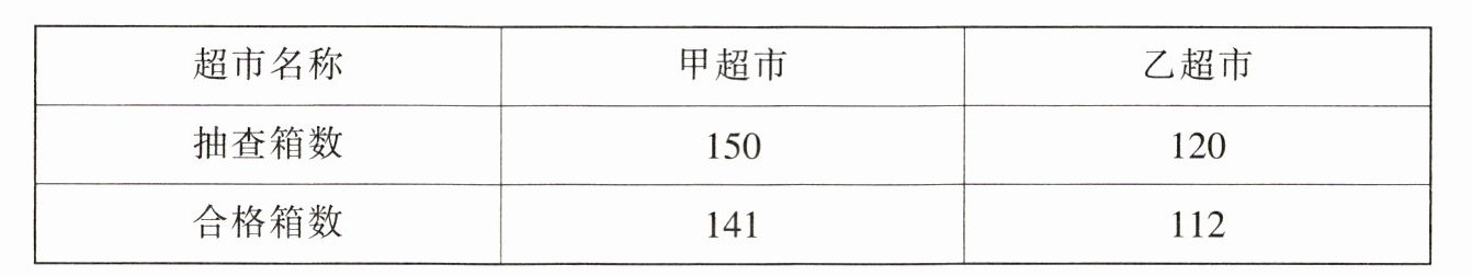 甲超市:$141÷150=94\%$ 乙超市:$112÷120\approx93.3\%$ 因为$94\%>93.3\%$ 甲超市水果罐头的合格率高。