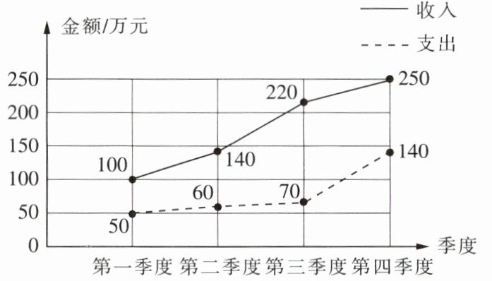 )季度的利润最多。(2)第二季度的支出比第四季度的支出少$$ \frac{(