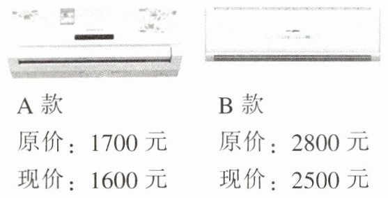 第一种方法:A款:(1700-1600)÷1700×100%≈5.9% B款:(2800-2500)÷2800×100%≈10.7% 5.9%<10.7% B款空调降低的百分比多。第二种方法:A款:1-1600÷1700≈5.9% B款:1-2500÷2800≈10.7% 5.9%<10.7% B款空调降低的百分比多。
