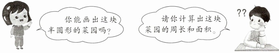 4. 小培的妈妈用篱笆围成一个半圆形的菜园,半径是 3 米。(小提示:实际 1 米长的距离用 1 厘米长度来表示)