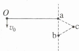 【例2】如图所示,在竖直面内固定三枚钉子a、b、c,三枚钉子构成边长$d=10{cm}$的等边三角形,其中钉子a、b的连线沿着竖直方向。长为$L=0.3{m}$的细线一端固定在钉子a上,另一端系着质量$m=200{g}$的小球,细线水平拉直,然后将小球以$v_0=\sqrt3 {m/s}$的初速度竖直向下抛出,小球可视为质点,不考虑钉子的粗细,重力加速度$g$取$10{m/s^2}$,细线碰到钉子c后,小球到达最高点时,细线拉力大小为()