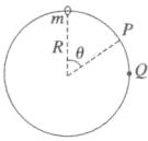 如图,一光滑大圆环固定在竖直平面内,质量为$m$的小环套在大圆环上,小环从静止开始由大圆环顶端经$Q$点自由下滑至其底部,$Q$为竖直线与大圆环的切点。则小环下滑过程中对大圆环的作用力大小(