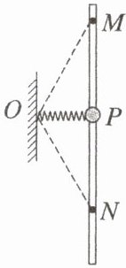 如图所示,轻弹簧一端固定在$O$点,另一端与一质量为$m$的小球相连,小球套在固定的竖直光滑杆上,$P$点到$O$点的距离为$L$,$OP$与杆垂直,杆上$M$、$N$两点与$O$点的距离均为$2L$。已知弹簧原长为$\frac{5}{4} L$,重力加速度为$g$。现让小球从$M$处由静止释放,下列说法正确的是(