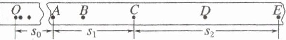 (选填步骤前的字母);(3) 如图所示,根据打出的纸带,选取纸带上的连续的五个点 $ A $、$ B $、$ C $、$ D $、$ E $,通过测量并计算出点 $ A $ 距起始点 $ O $ 的距离为 $ s_0 $,点 $ AC $ 间的距离为 $ s_1 $,点 $ CE $ 间的距离为 $ s_2 $,若相邻两点的打点时间间隔为 $ T $,重锤质量为 $ m $,根据这些条件计算重锤从静止释放到下落 $ OC $ 距离时的重力势能减少量 $ \Delta E_p = $_________,动能增加量 $ \Delta E_k = $_________;在实际计算中发现,重锤减小的重力势能总是大于重锤增加的动能,其原因主要是_________。