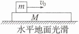 由能量守恒,系统减少的机械能等于摩擦力与相对位移的乘积,即$fd=\frac{1}{2}mv_0^{2}-\frac{1}{2}(m + M)v^{2}$,把$v=\frac{mv_0}{m + M}$代入可得$fd=\frac{Mm v_0^{2}}{2(m + M)}$。
